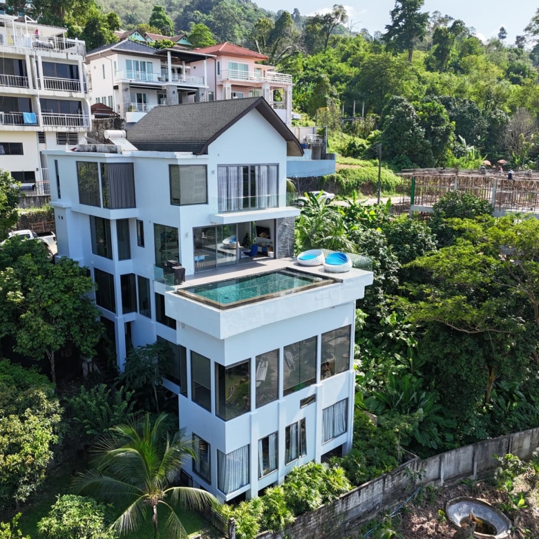 This exceptional luxury pool villa in Patong offers breathtaking panoramic views of the sea, city, and surrounding mountains, set in a quiet, elevated location overlooking Patong. Designed for privacy and upscale living, this expansive residence combines elegant interiors with world-class amenities, making it ideal as a private home or high-end investment property.